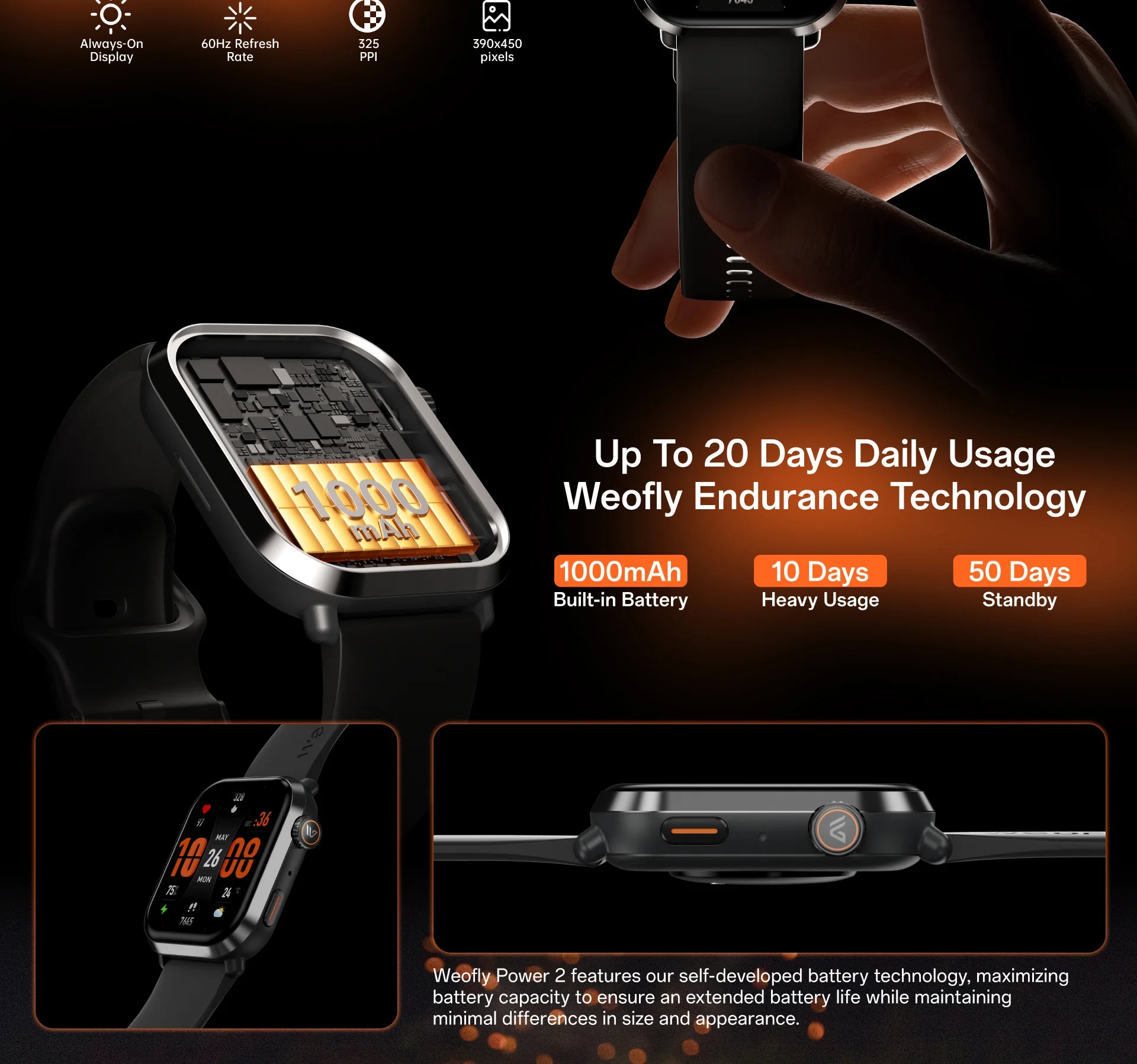 - 1000mAh Big Battery & Up To 20 Days Usage