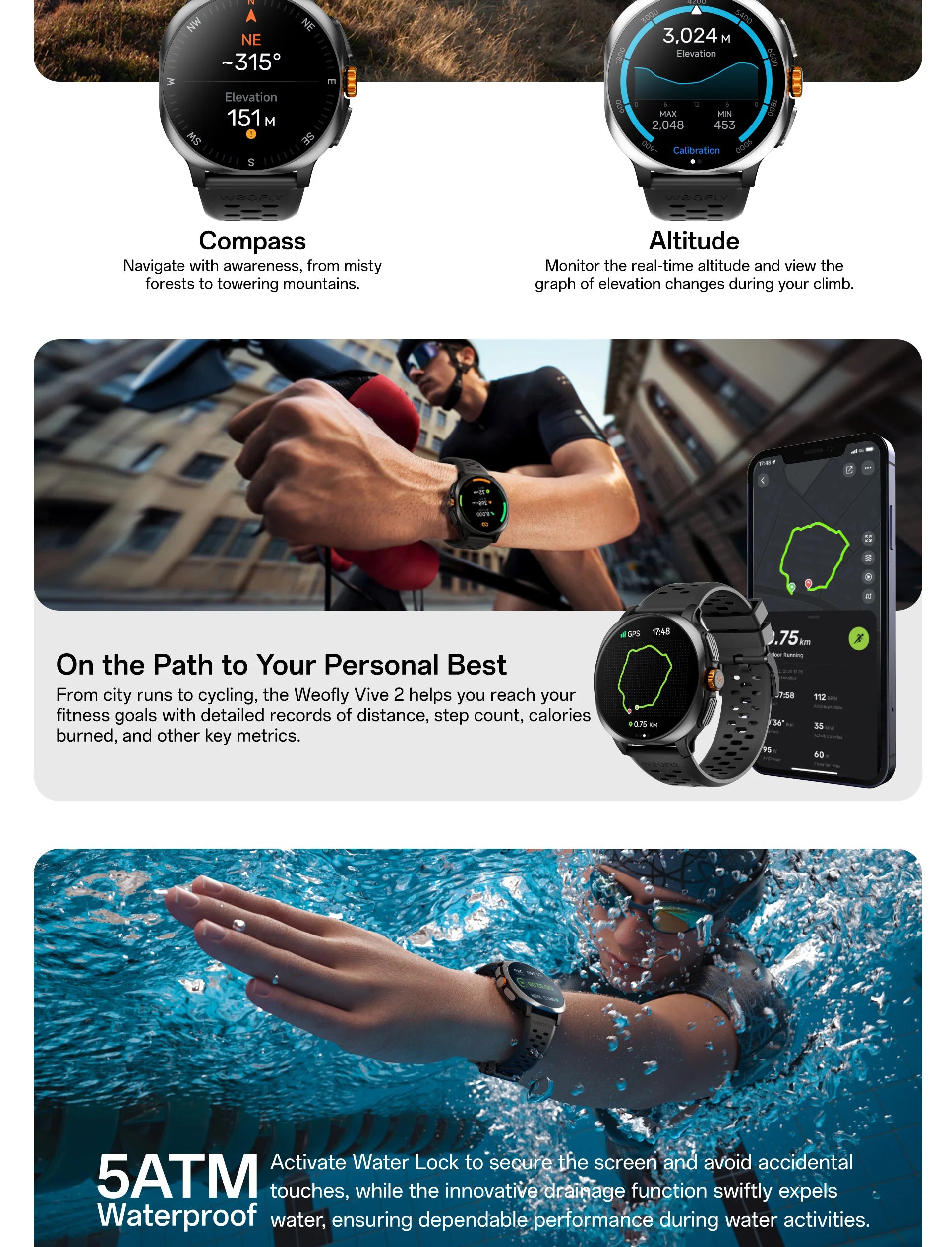 - 5ATM Water-resistance