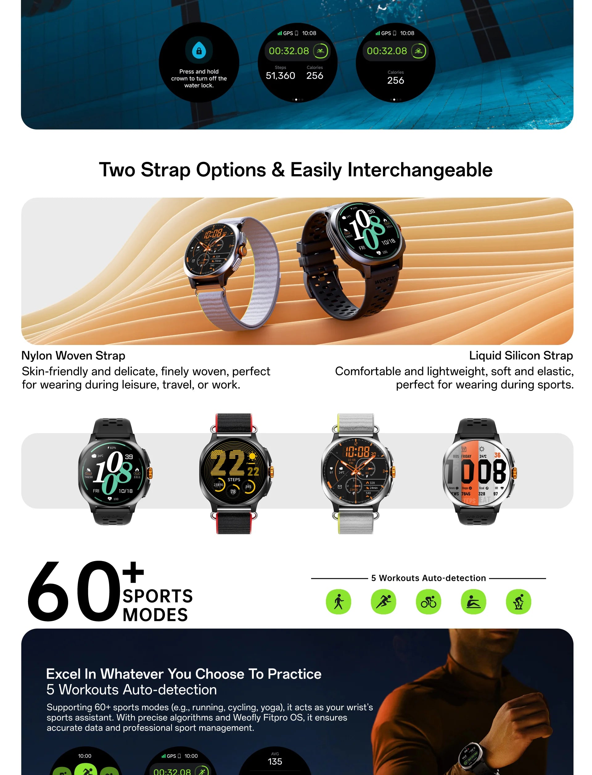 - Workouts Smart Recognition & 60+ Professonal Sports Modes